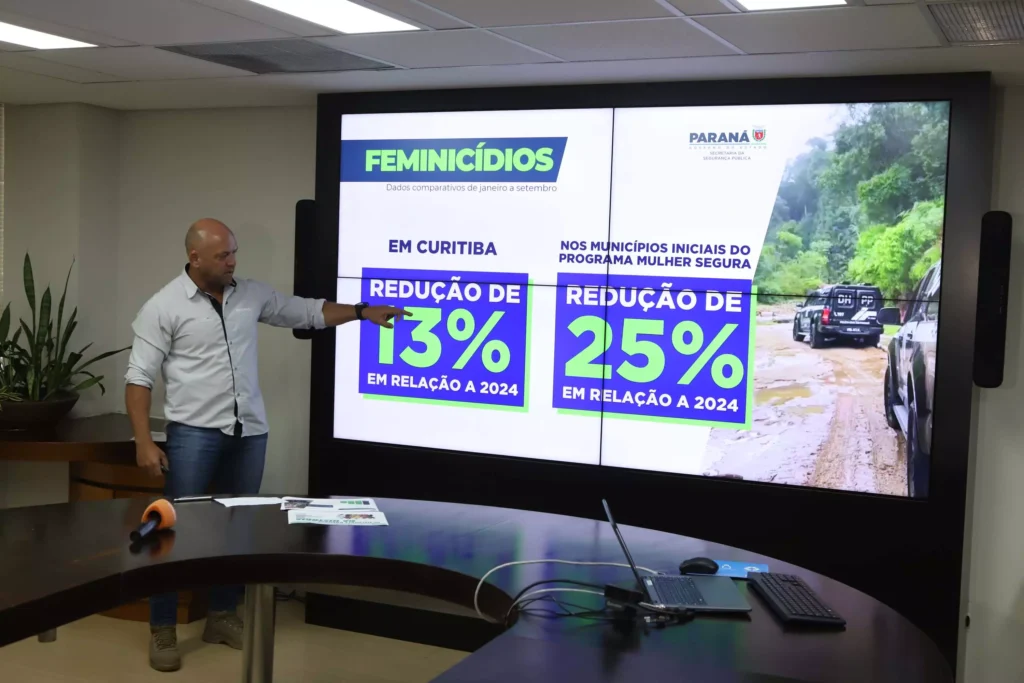 O Paraná registrou queda de 10% nos casos de feminicídio entre janeiro e setembro de 2025, em comparação com o mesmo período do ano anterior.