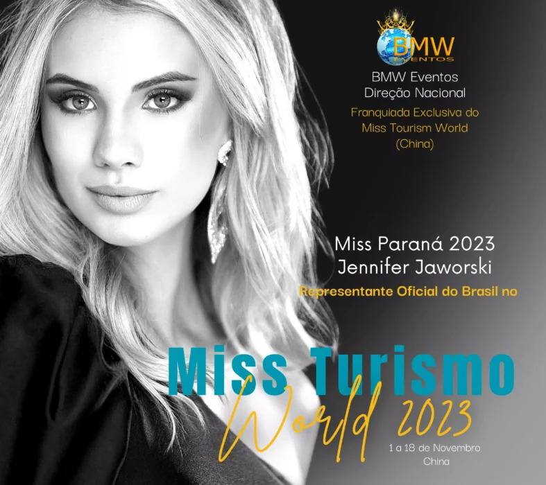 A BMW Eventos, empresa fundada há 32 anos, oficializou o nome da Miss Paraná 2023 – Jennifer Kuiawa Jaworski (22) para participar do Miss Tourism World 2023. Ela chega no dia 1º de novembro em Jinjiang, província de Fujian, que estará sediando o tradicional concurso. Durante 17 dias, as candidatas conhecerão várias localidades turísticas da China, bem como terão oportunidade de apresentar e divulgar para as autoridades, particularidades de seus países de origem. A grande final será no dia 18 de novembro e lá, mais uma vez, uma brasileira marcará presença.