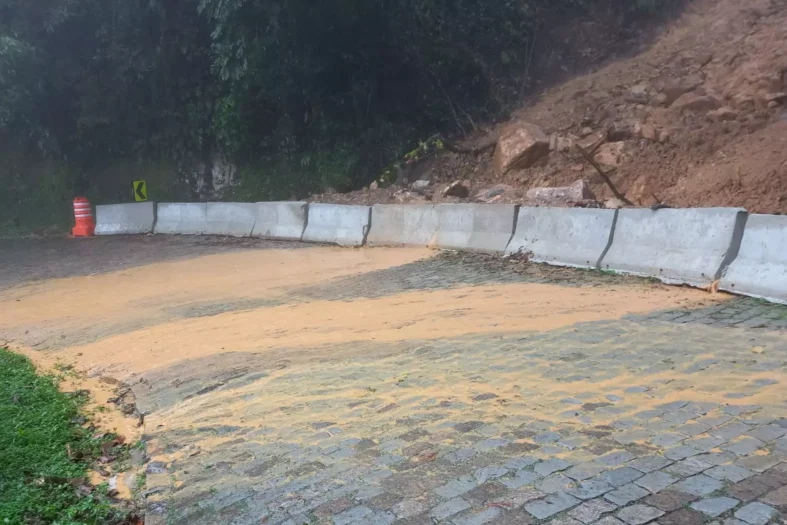 O trecho conta com obras de recuperação de talude em quatro quilômetros, após deslizamentos de terra, rochas e vegetação em meses anteriores.