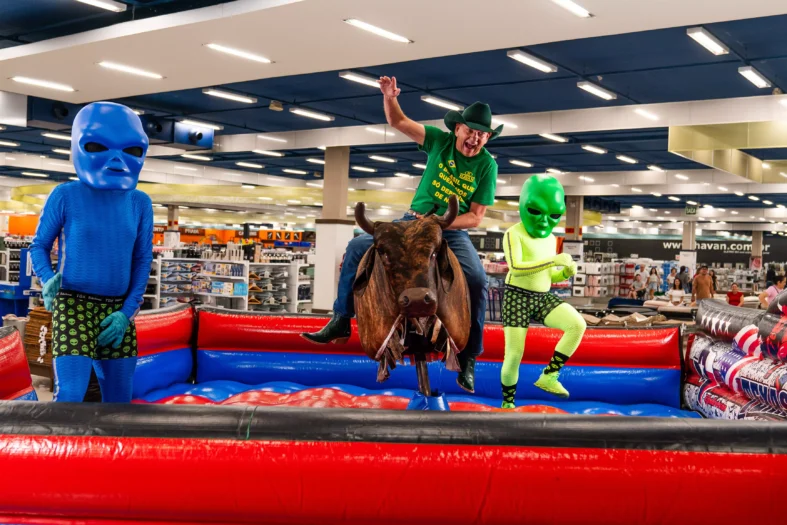 A Havan de Parolin, em Curitiba (PR), preparou uma ação especial para seus clientes. Inspirada no sucesso do comercial “Descer pra Havan“, lançada nesta semana em todo o país, a loja disponibilizará um touro mecânico para quem quiser se divertir. A atração estará disponível gratuitamente nesta sexta-feira, 7, das 15h às 19h, proporcionando momentos de lazer para toda a família.