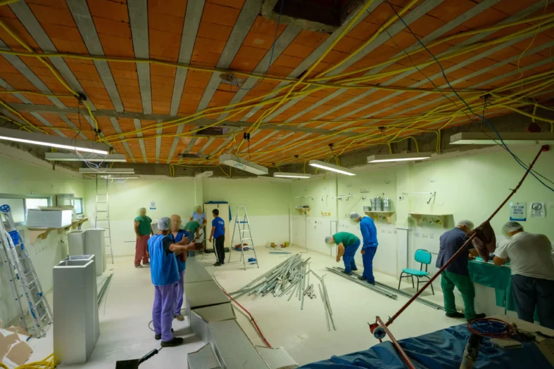 “Fizemos um revezamento entre as seis salas, reformando um espaço de cada vez. Agora só falta a sala de recuperação. Enquanto ela é finalizada, estamos usando duas salas de cirurgia que foram temporariamente convertidas para a recuperação pós-operatória”, explicou Boschi.