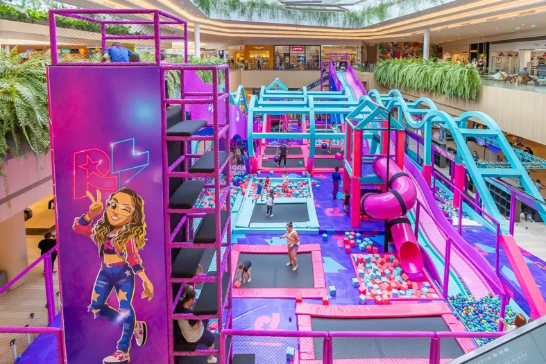 Localizado na praça central, com mais de 550 m², o parque gigante conta com 1.200 metros cúbicos de cenário, 5 mil molas metálicas, 20 mil quilos de estrutura, 260 m² de camas elásticas e 200 metros de descida de tobogã. “São proporções enormes, como o número de fãs que nos acompanham no online” – afirma Rafaella Baltar, youtuber protagonista do canal.