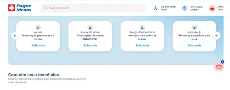 Assistente virtual fica alocada dentro do portal Pague Menos