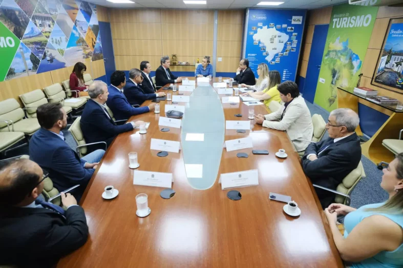 Uma comitiva paranaense capitaneada pela Secretaria de Estado do Turismo (Setu) esteve em Brasília nesta quarta-feira (12) para levar propostas de parcerias e ações conjuntas ao Ministério do Turismo e à Agência Brasileira de Promoção Internacional do Turismo (Embratur). Entre elas, o fortalecimento de Foz do Iguaçu nas campanhas de promoção internacional e que Foz e Curitiba recebam projetos-piloto como Destinos Turísticos Inteligentes (DTI).
