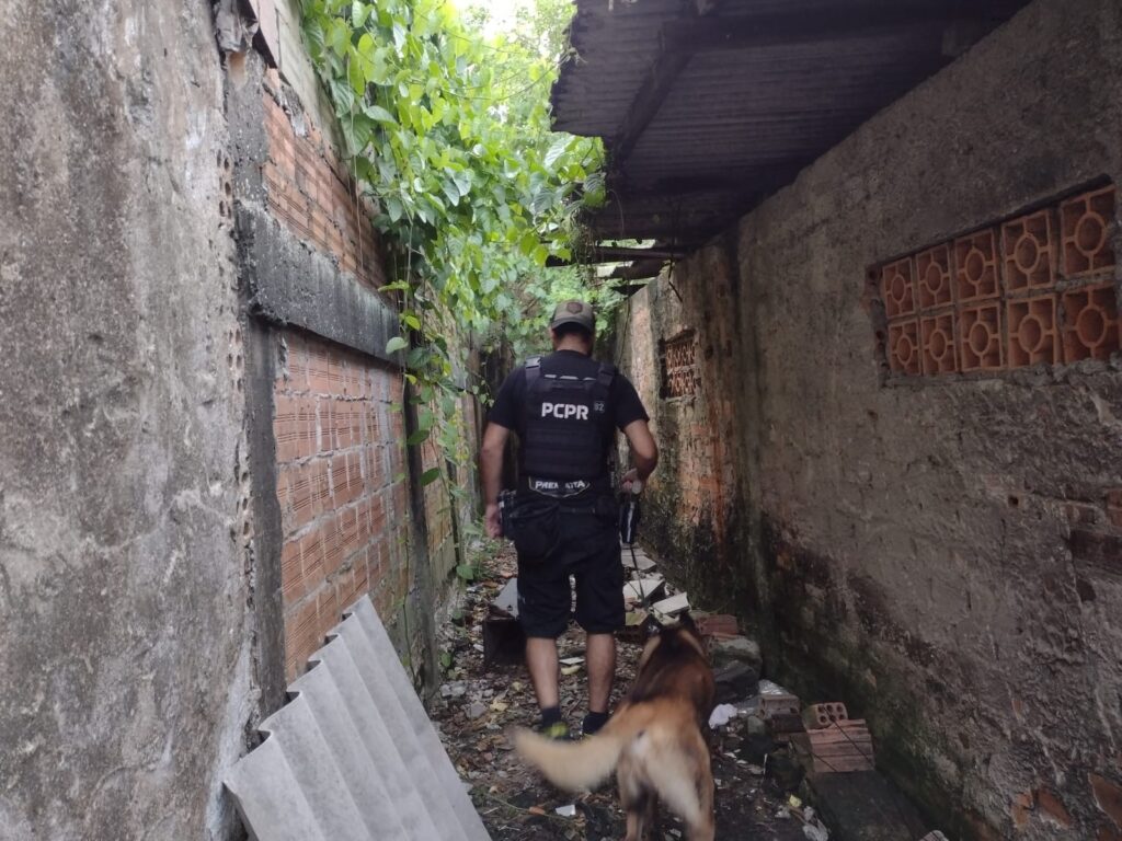 Cerca de 100 policiais civis e militares participam da ação, que ainda conta com o apoio de cães da PCPR.