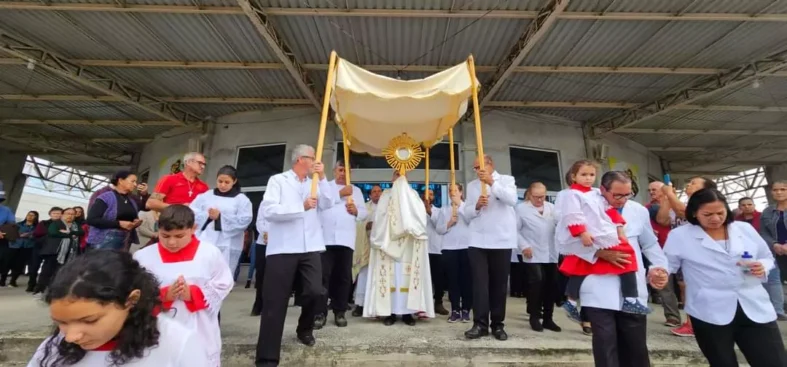 O Padre João Mário, do Santuário de São José, falou sobre a importância da data de Corpus Christi para os católicos: “Esta é a solenidade do Santíssimo Sacramento do corpo e sangue de Cristo, para nós católicos uma data muito importante, pois anunciamos que verdadeiramente o senhor se faz presente na eucaristia, o pão vivo que desceu do céu, que se faz alimento, que se faz doação, que se entrega, para nos sustentar e nos encorajar para que continuemos firmes na missão, como batizados e enviados”, disse o padre.