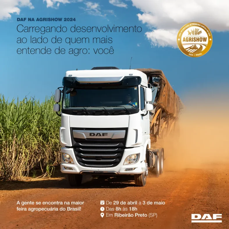 A DAF Caminhões Brasil estará presente na 29ª edição da Agrishow: Feira Internacional de Tecnologia Agrícola, que ocorre em Ribeirão…