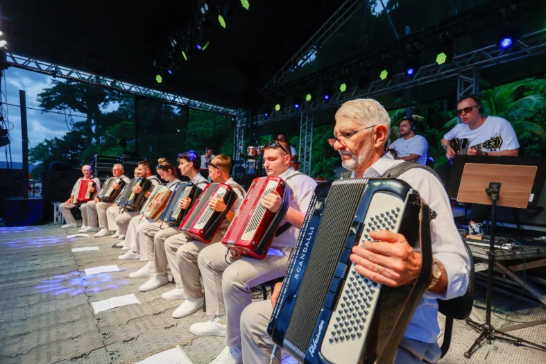 “É a nossa primeira vez aqui no Verão Maior, que é um projeto bem bacana porque traz um pouco da cultura paranaense. Todo mundo tem na família alguém que tocava acordeão, então existe essa nostalgia, e a nossa proposta é tocar um repertório mais contemporâneo. Acabamos de lançar o terceiro disco, chamado Percurso, e apresentamos parte dele aqui em Guaratuba”, contou Guero